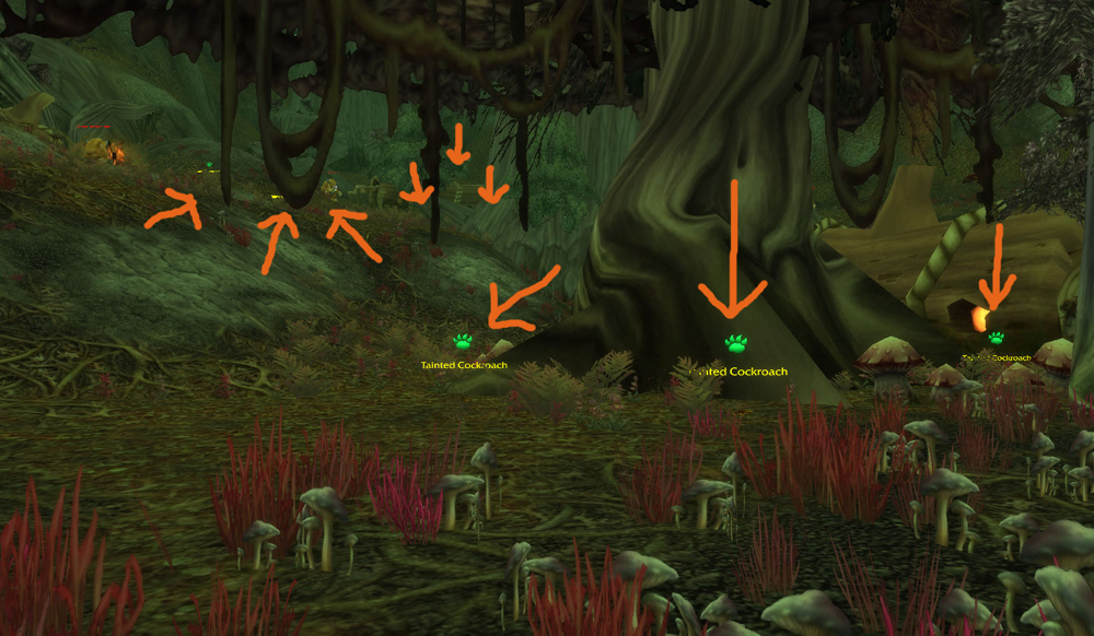 3 separate camps of 3 roaches, all filled with battle pets. There are a few more in this area too. All along the edges of the map, there are roaches and rats galore, just waiting to be curbstomped by some lucky tamer.