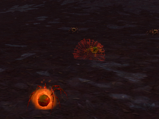 But there are a couple of reasons for me to explore their creepy little leggy crawly beady eyed oh god this sentence has to be over now. First of all, many of these guys are low-texture, and you know how that tickles my fancy. They were one of the first to be made over, into both a spindly-legged model and a fuzzier tarantula model, and now there are even more varied models to choose from. The low-texture version is also reused for Pandaria with the bizarrely pink Amethyst Spiderling and thus have spanned across expansion packs, so they kinda fill that same role as the frog.