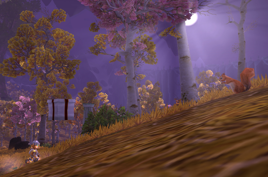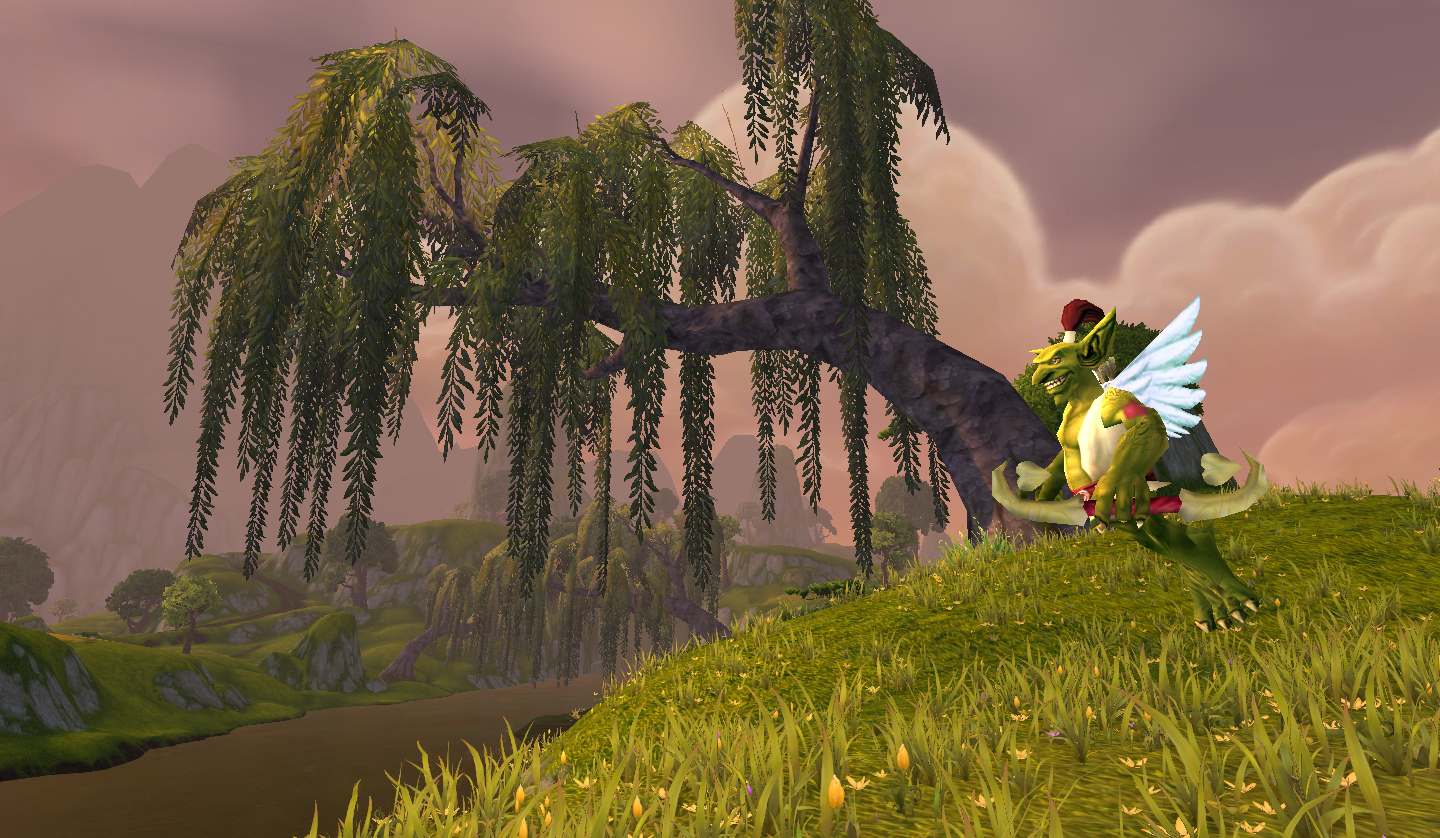 I usually don’t focus on the visuals of pets too closely, but this guy has one of the cutest idle animations I’ve seen, where he paws at a gold fly that spawns near him occasionally. All his animations are adorable, but that one in particular makes me want to pet him. He’ll also fly behind you, and until Gloria’s Glorious Gliding Goodies are realized in WoD that’s a pretty unique commodity.