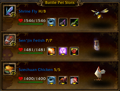 In place of the first 2 battle pets, the Tranquil Mechanical Yeti or Menagerie Custodian are good choices, as are the Pet Bombling and Blackfuse Bombling, because they all have those big match-ending moves. Just keep in mind that you need to select non-DoT, single-hitting damage moves in your other slots. A pet with Launch Rocket, like the Clockwork Gnome, might be an alright backup choice. Launch Rocket’s 2-turn nature makes it a bit less easy to use, but may lend to more dps throughput depending on how many turns your pet can survive. The Mechanical Pandaren Dragonling is further down the list for me here, because while it does have the Explode button, it has no other meaningful offense to use here. To be completely honest, in place of the Micro-Sentry I actually prefer Son of Animus, but he’s still super rare and the Micro-Sentry gets the job done really well anyway. Nearly any pet with Extra Plating is an OK choice here.