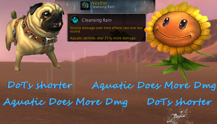 The biggest chunk of your strategy begins immediately. Nishi’s Siren has Solar Beam, which hits very hard normally, but tacks on an extra big hit if it’s in Sunny weather. So of course the first thing Siren does is cast Sunlight. You need to change the weather, now. You have an intervening turn where Siren casts a heal on itself before it’ll explode your pet’s face off. If your first battle pet is above Siren’s speed (280) you can put in your carry pet off the bat and enough time to change the weather. However it’s important to note that if your pet is at or below 280 speed you won’t, so you’ll need to start with your first ‘real’ battle pet, and then swap in the carry pet further down the line. In this case I usually switch in the carry during Toothbreaker‘s Sons Of The Root, and make sure my carry is above level 8 or so. Either way is fine, but you just need to be aware of it before you start.