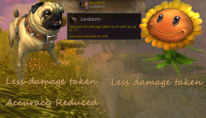 The Strider has a lot of very strong aquatic offense and a weather effect. I’ve used frogs in this slot too. Either is fairly reliable as long as you make sure to switch in that weather effect. The crab is pretty much just there for cleanup. I’ve used mechanicals in that slot, because this battle pet will be facing Nishi’s beast, but if my first pet goes down early this can make for bad times because the rest of Nishi’s pets are elementals. A Flying with Lift Off or the Anubisath Idol makes for a good anchor too.