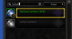 Yeah, there’s a slight issue here. The reason I personally have the one and not the other is that, since the advent of account-wide pets, I’ve mostly been playing Horde. Once a character has collected 50 coins, Valadar Starsong in Moonglade sells Horde players the Festival Lantern, and Alliance players the Lunar Lantern. I never really got around to collecting enough coins, involving quite a bit of laborious travel around the continents, on my Alliance character.
