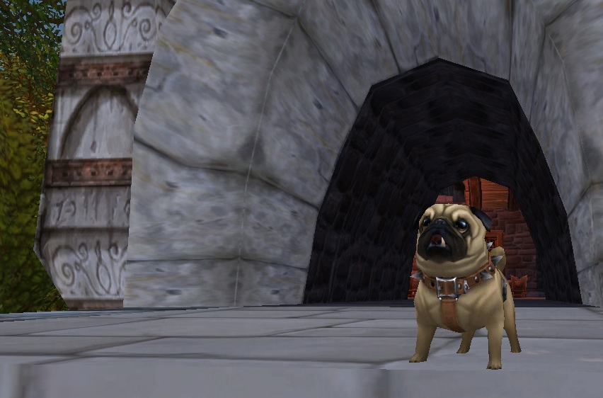 There were 2 big issues with using the pug, though. The first, largely cosmetic one, was that WoW wouldn’t let me give him his original proper name, Mr. Rochester. Even removing the honorific, Rochester just wasn’t allowed. I’m guessing because of the ‘chest’ in the middle. So, he became she. Bertha, the sublimated passionate side of the dichotomy of the nature of Victorian women. What? Oh come on, pick up a book once in a while dude.
